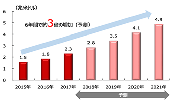 インターネット人口の増加や、eコマースのインフラ整備、物流システムの効率化等を背景に、世界のeコマースの市場規模は継続的な拡大が予想されます。
